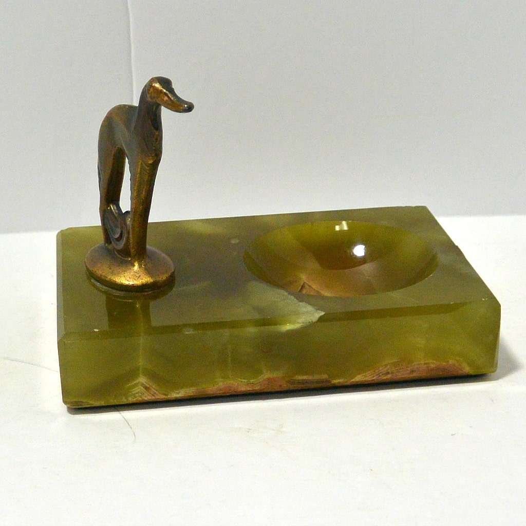 Art Deco Oynx Pin Tray with Borzoi Dog