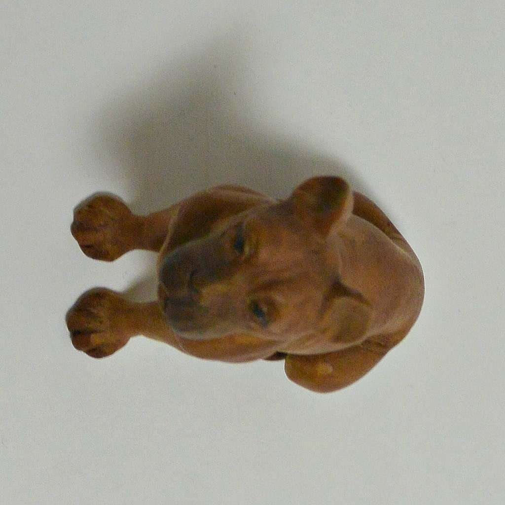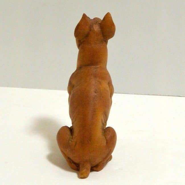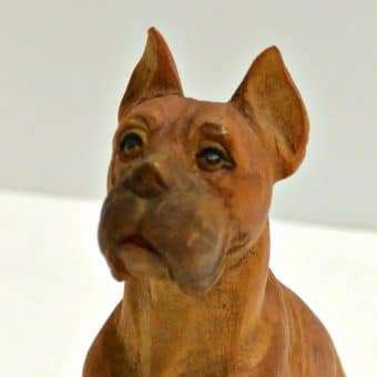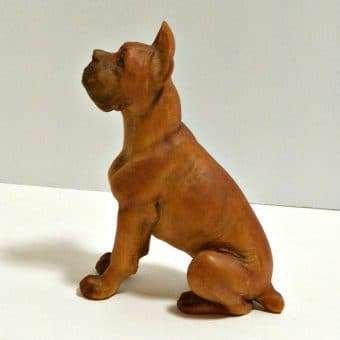 This exquisite, Anri, carved wood figurine is a seated Boxer dog.