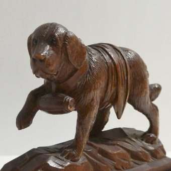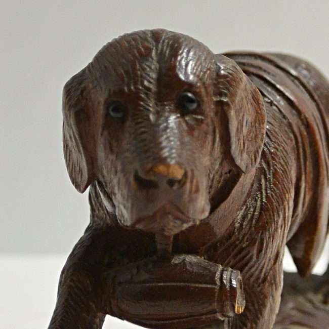 Hand-carved in the late 1800’s, it showcases exquisite detailing of both the dog and the base, just the same high quality that you would expect from Black Forest, Germany craftsmanship.