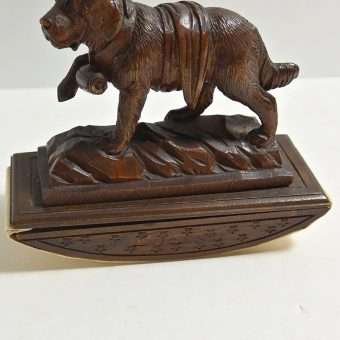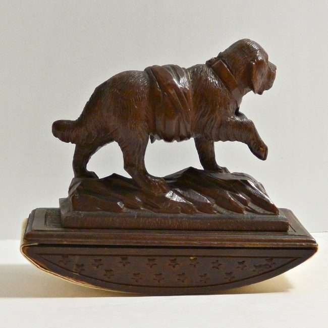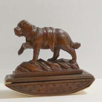 This extraordinary, Black Forest wood ink blotter features a Saint Bernard dog.