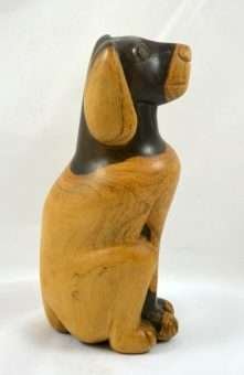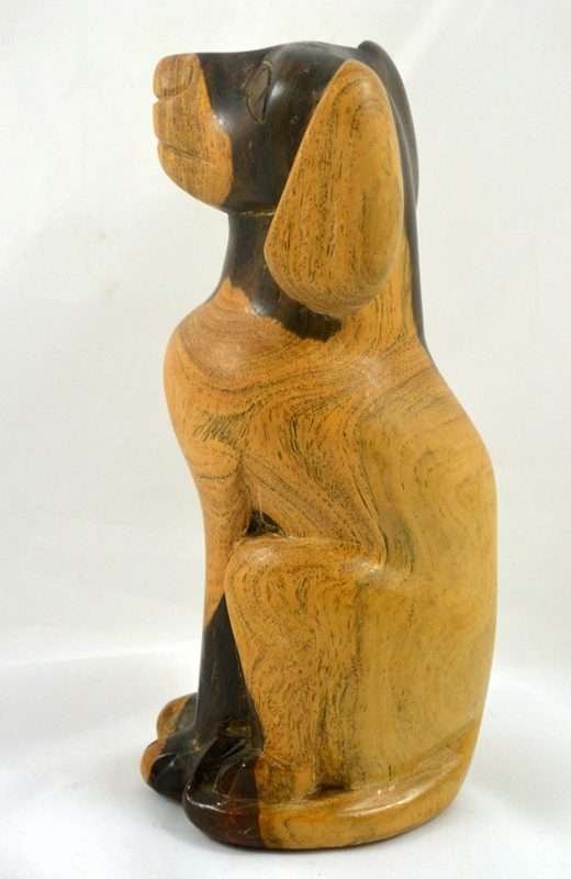 This beautiful carved wood dog has simple lines, but shows an extraordinary use of wood. It is carved from Sono Wood, also known by a variety of other names such as East Indian Rosewood, Salabar, Biti or Kalaruk.