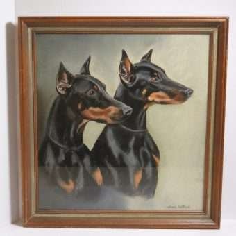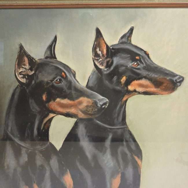 This vintage, original dog portrait has a “commanding” presence. Whether it is due to these majestic-looking dogs, themselves, the talent of this popular artist, or both, we will let you be the judge.