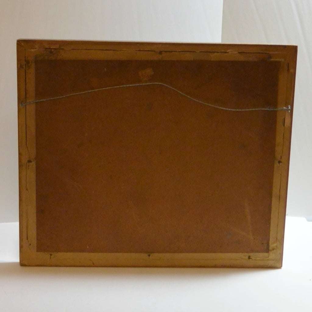 Measuring 19 1/2″ tall x 16 1/2″ wide, it is framed under glass in what appears to be its original wood frame.