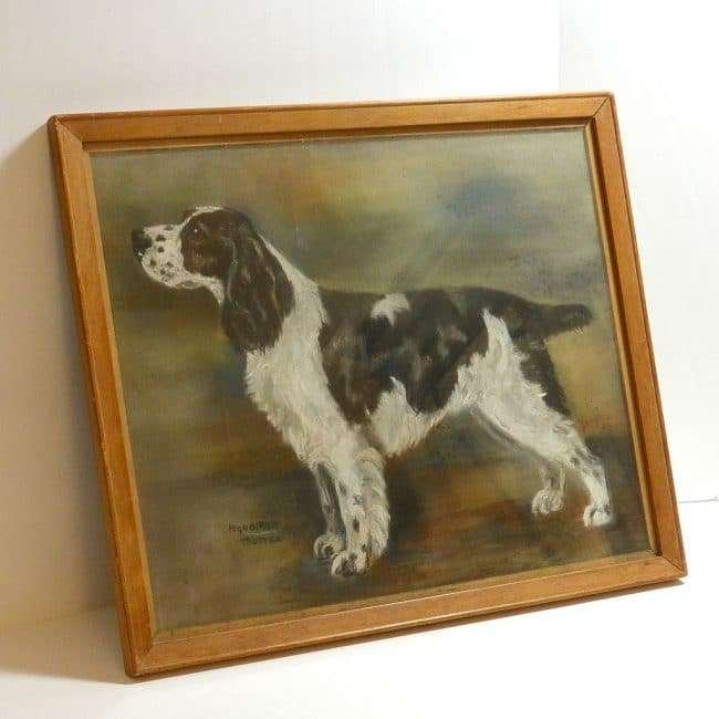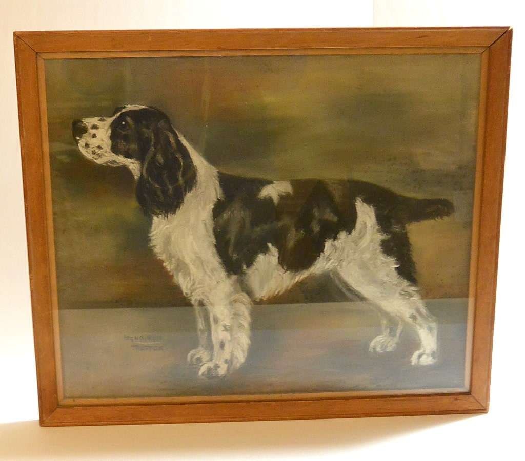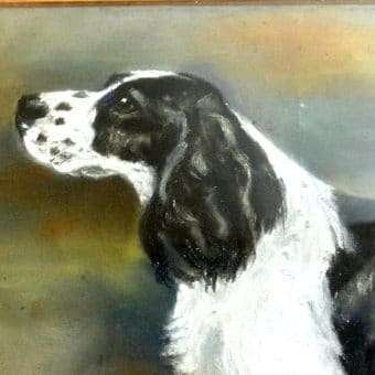 This wonderful portrait of a black and white Springer Spaniel, was most likely of the artist’s own dog.