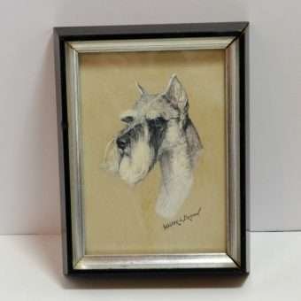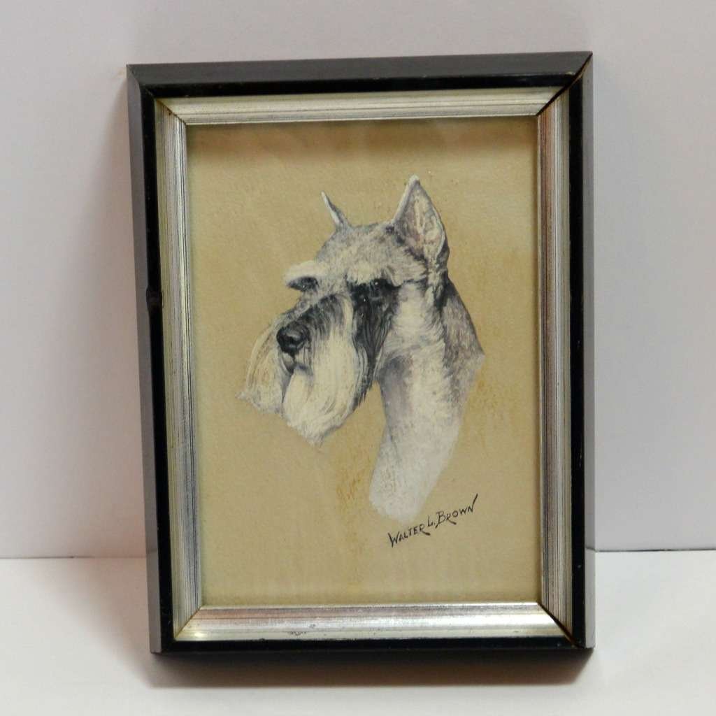This extraordinary, original portrait of a standard Schnauzer, was sketched in pencil and signed by artist Walter L. Brown. The detailing is magnificent, giving the dog all the elegance and dignity his wonderful breed deserves.