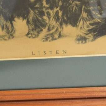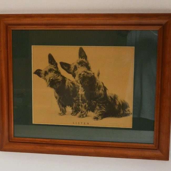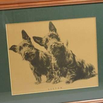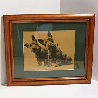 This print of two Scottish Terriers was originally produced by Morgan Dennis of Boston, MA (1896-1960) and then used in 1935 as an advertisement for The Black and White Scotch Whiskey Company.