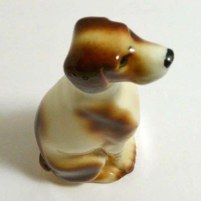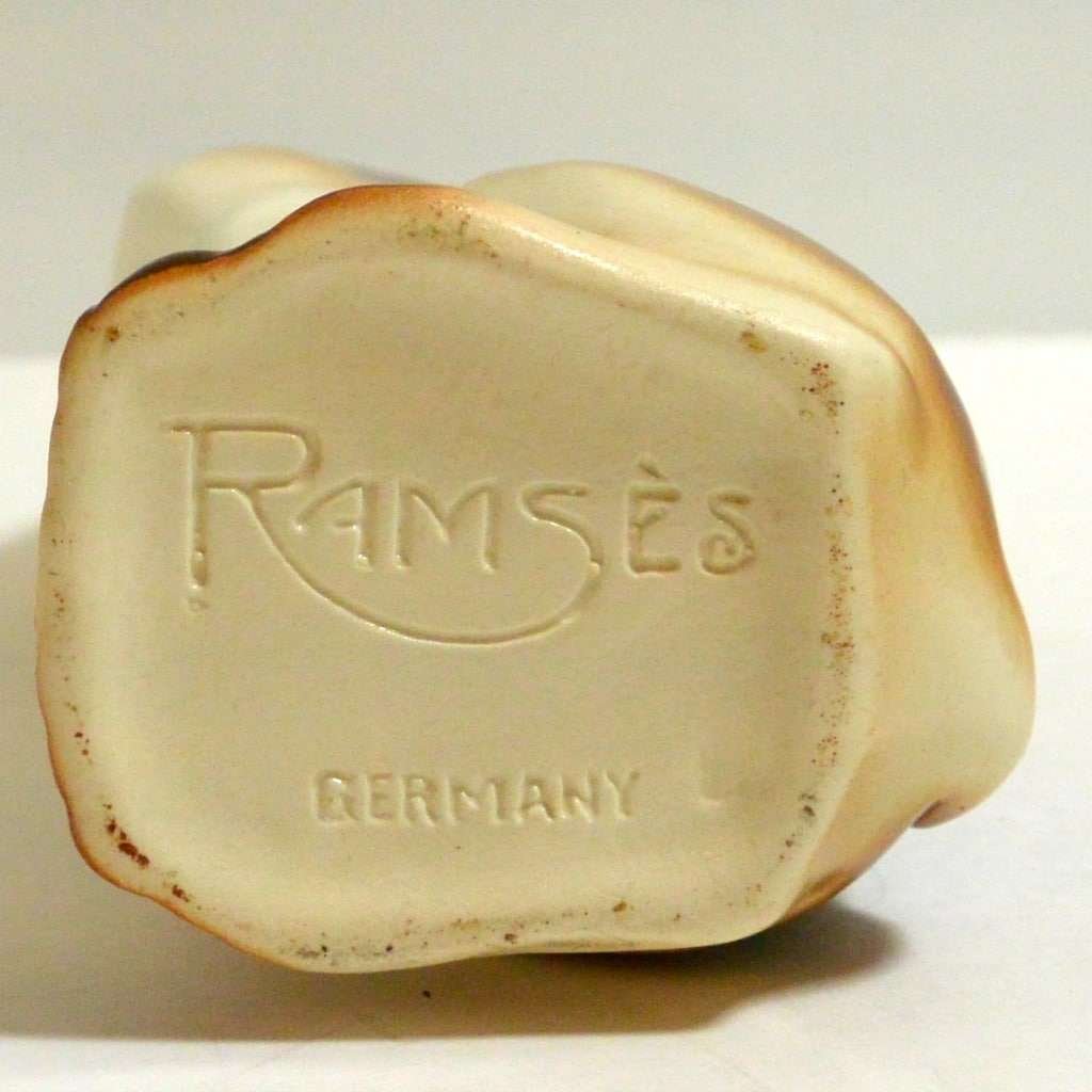 This handsome, hand-painted Pointer is a vintage decanter. Marked “Ramses Germany” on the bottom, he is seated and gazing upwards, as though he is waiting to hear what comes next.