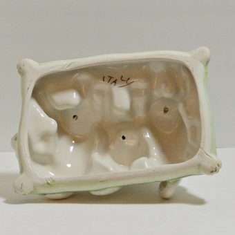 Sharing a pretty green cushion, as the best friends that they are, they measure 7″ tall x 8″ long x 6″ wide, and are in excellent condition.