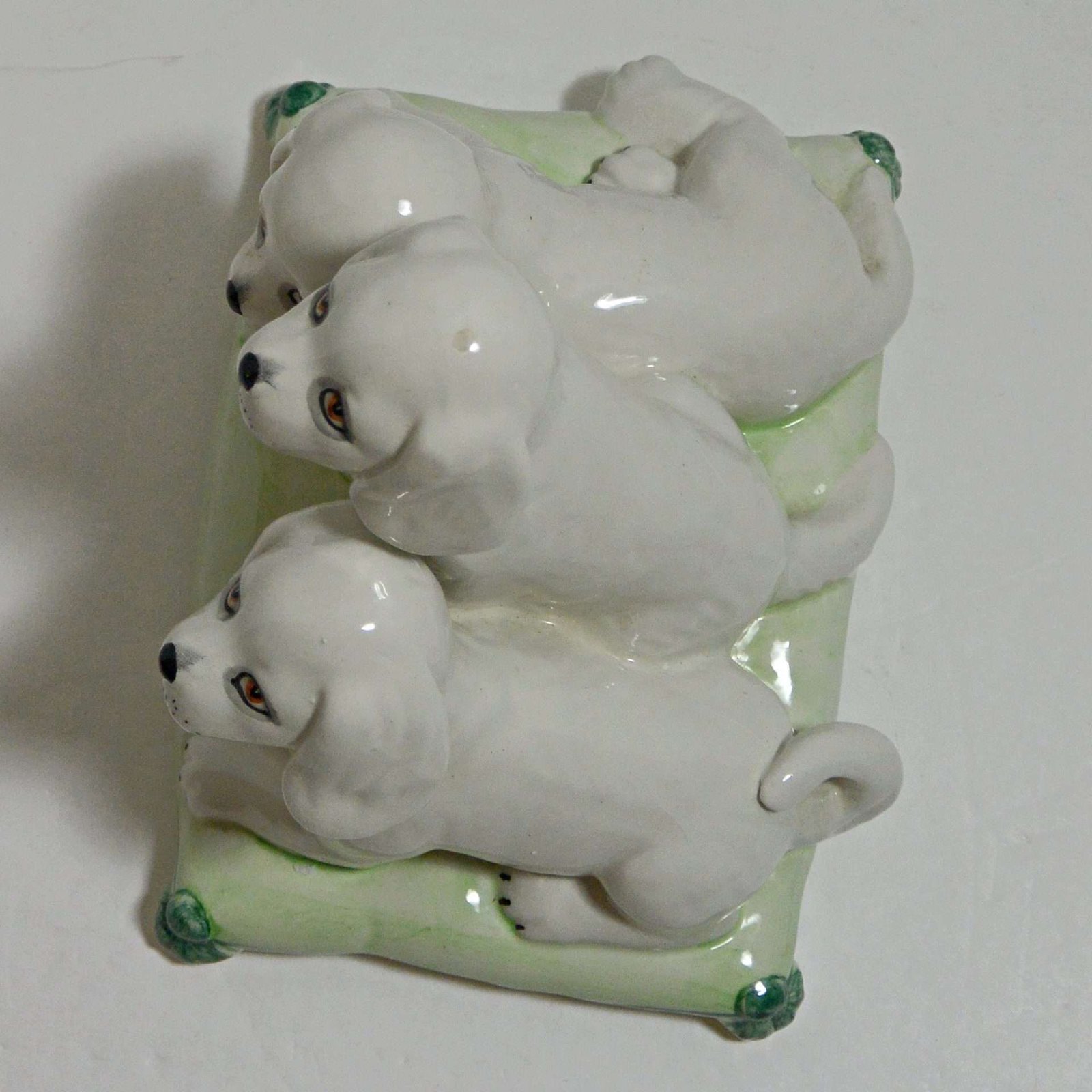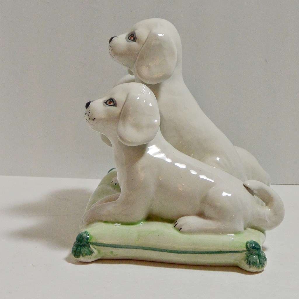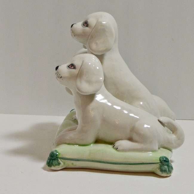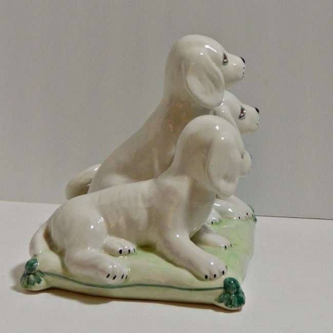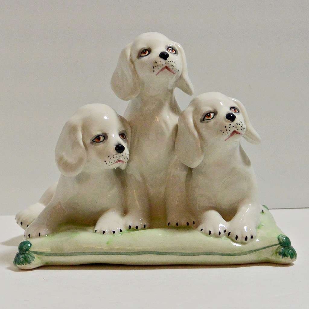 This charming trio of white puppies were handmade and hand painted in Italy.