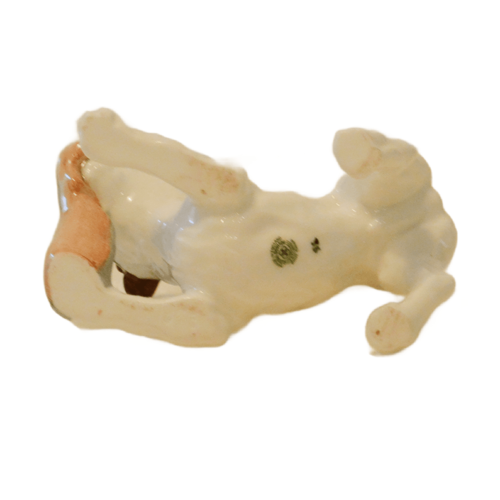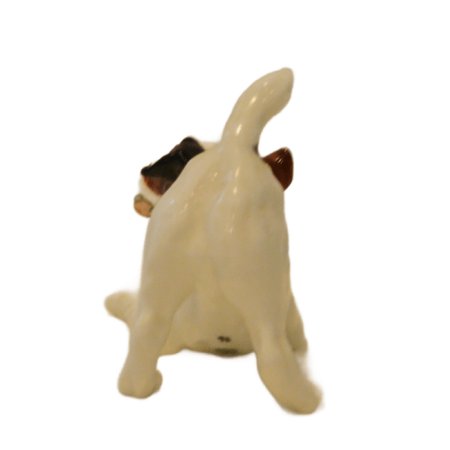 This wonderful pup has a perfect high gloss finish, and bears the green Royal Doulton backstamp and the mold # H.N. 2654. He is in excellent condition and stands 3 1/2″ tall x 4″ long x 2″ wide.