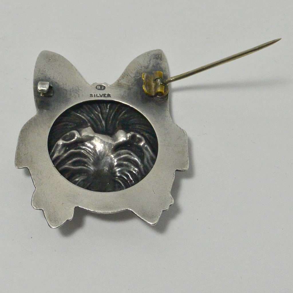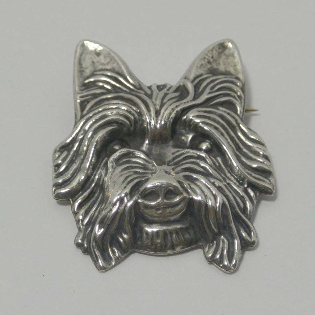 A rare treat for any Yorkshire Terrier enthusiast, this vintage, sterling silver dog head brooch is unique and exquisite.