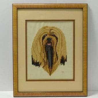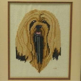 Lhasa Apso Needlepoint Portrait Framed c.1984