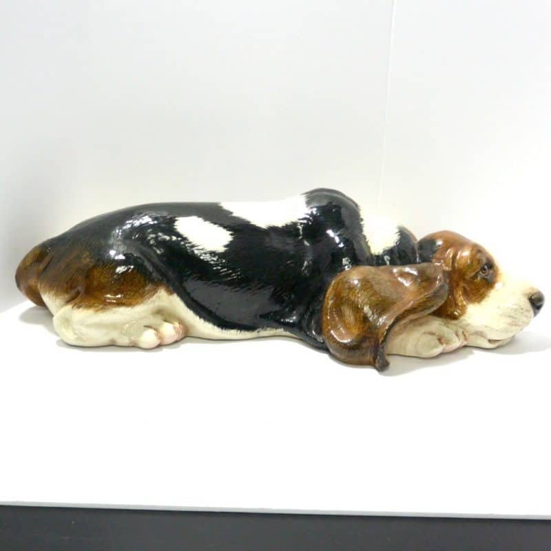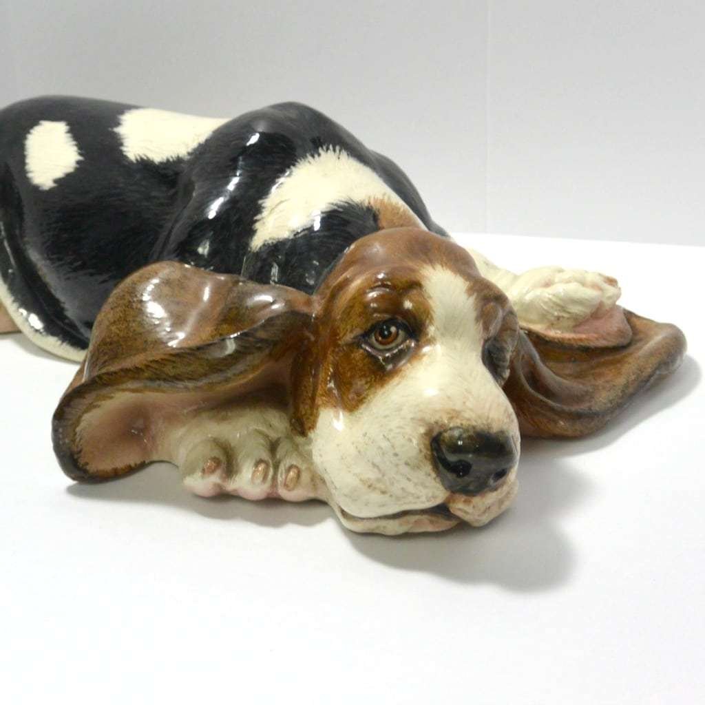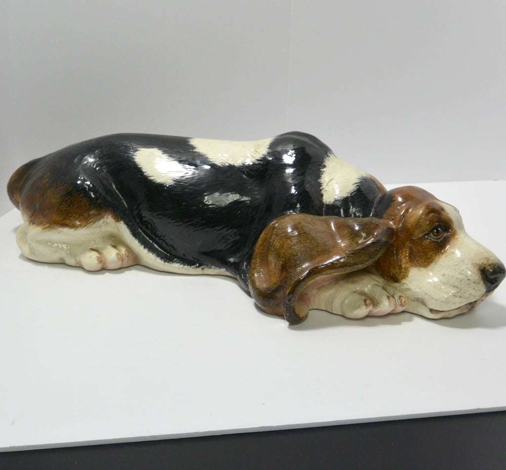 Large Hand-Painted Ceramic Basset Hound Figurine
