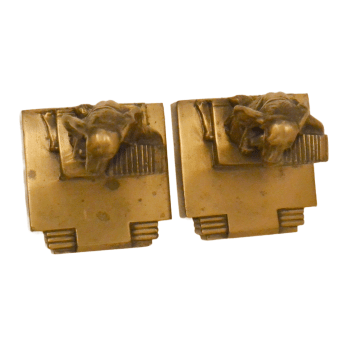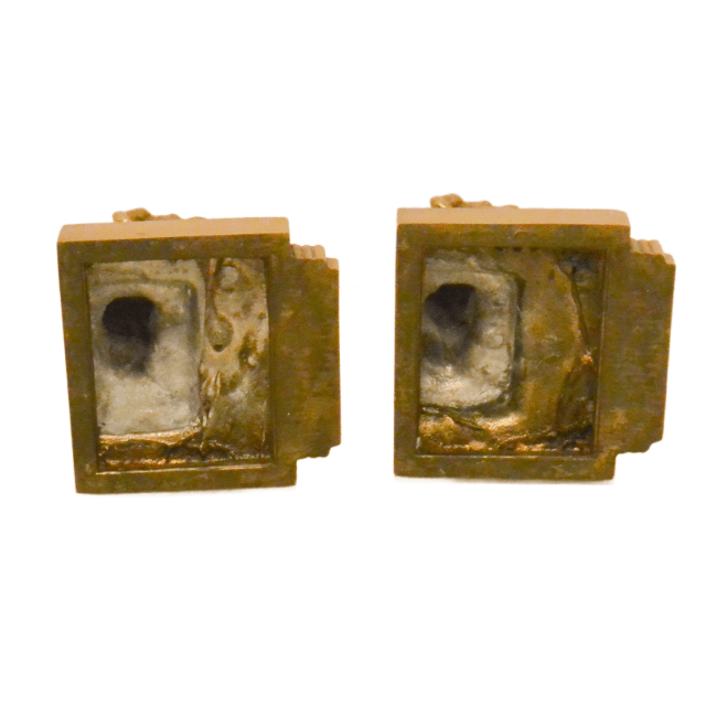 They are hollow, cast metal with a heavy brass plating, that was a signature process for all Jennings Brothers bookends.