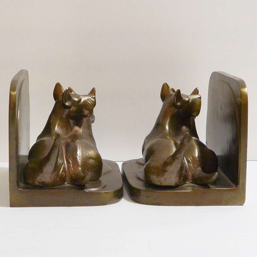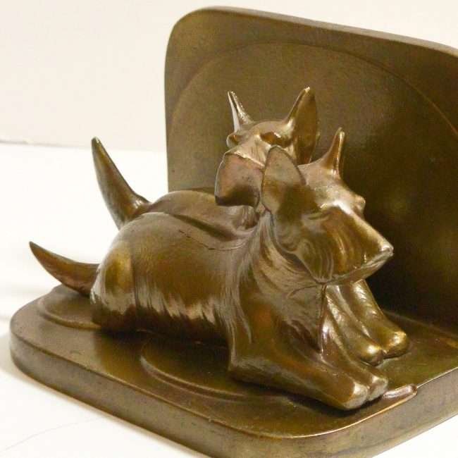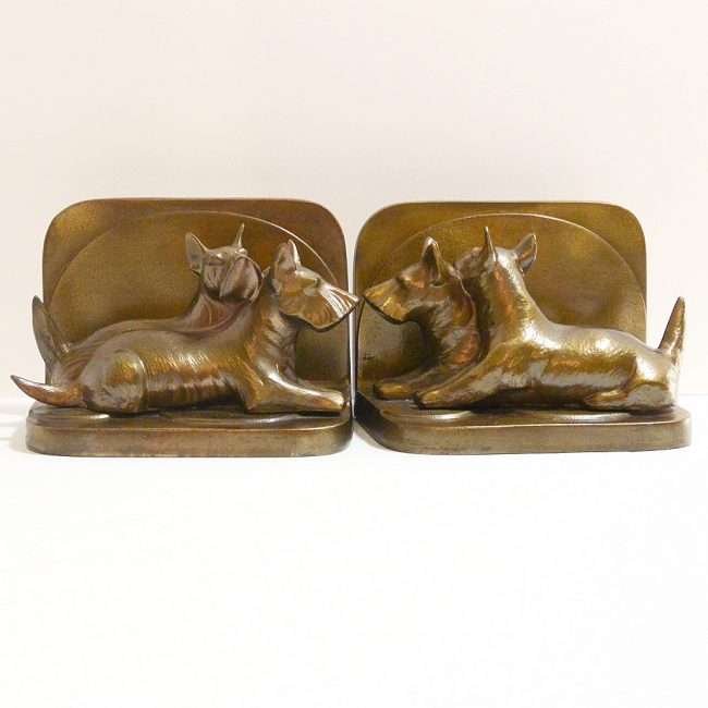 This pair of bronzed, Scottish Terrier Dogs, metal bookends are a wonderful example of Art Deco style.