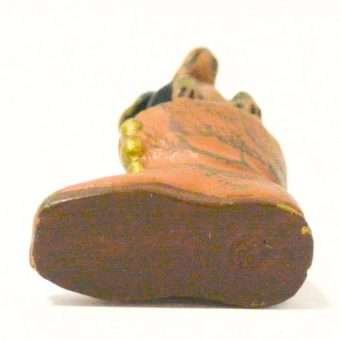 This engaging figurine measures 1 1/4″ tall x 3/4″ long x 1/8″ wide and it is in great condition, with a few tiny spots of missing paint.