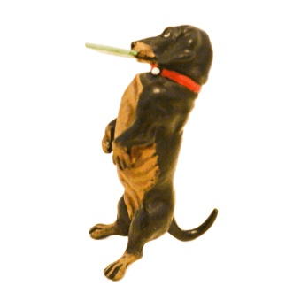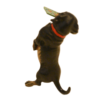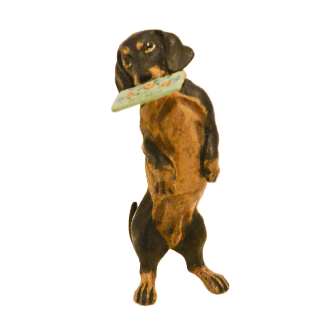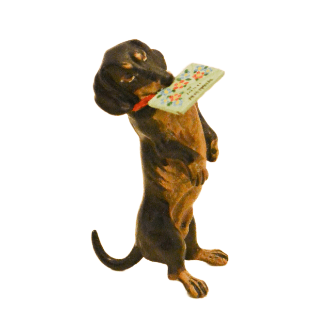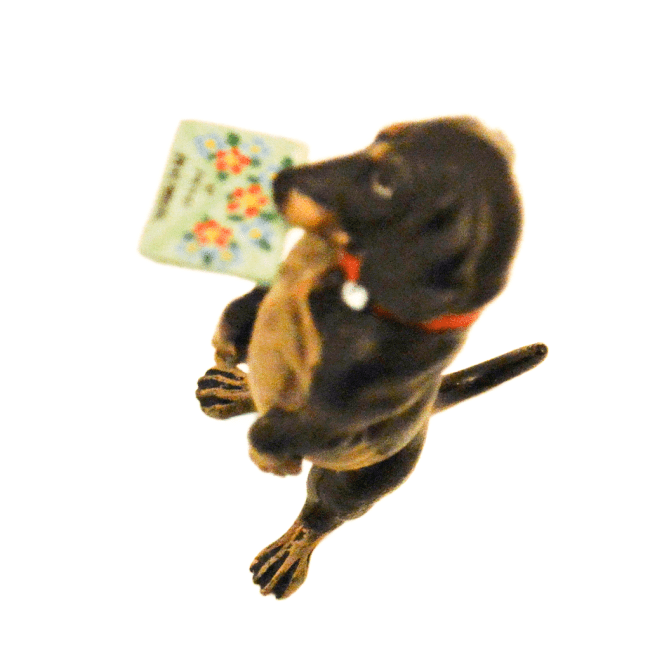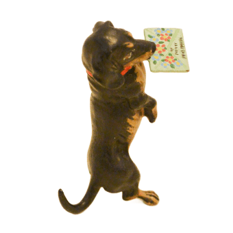 Austrian Bronze Dachshund Dog with Greeting Card