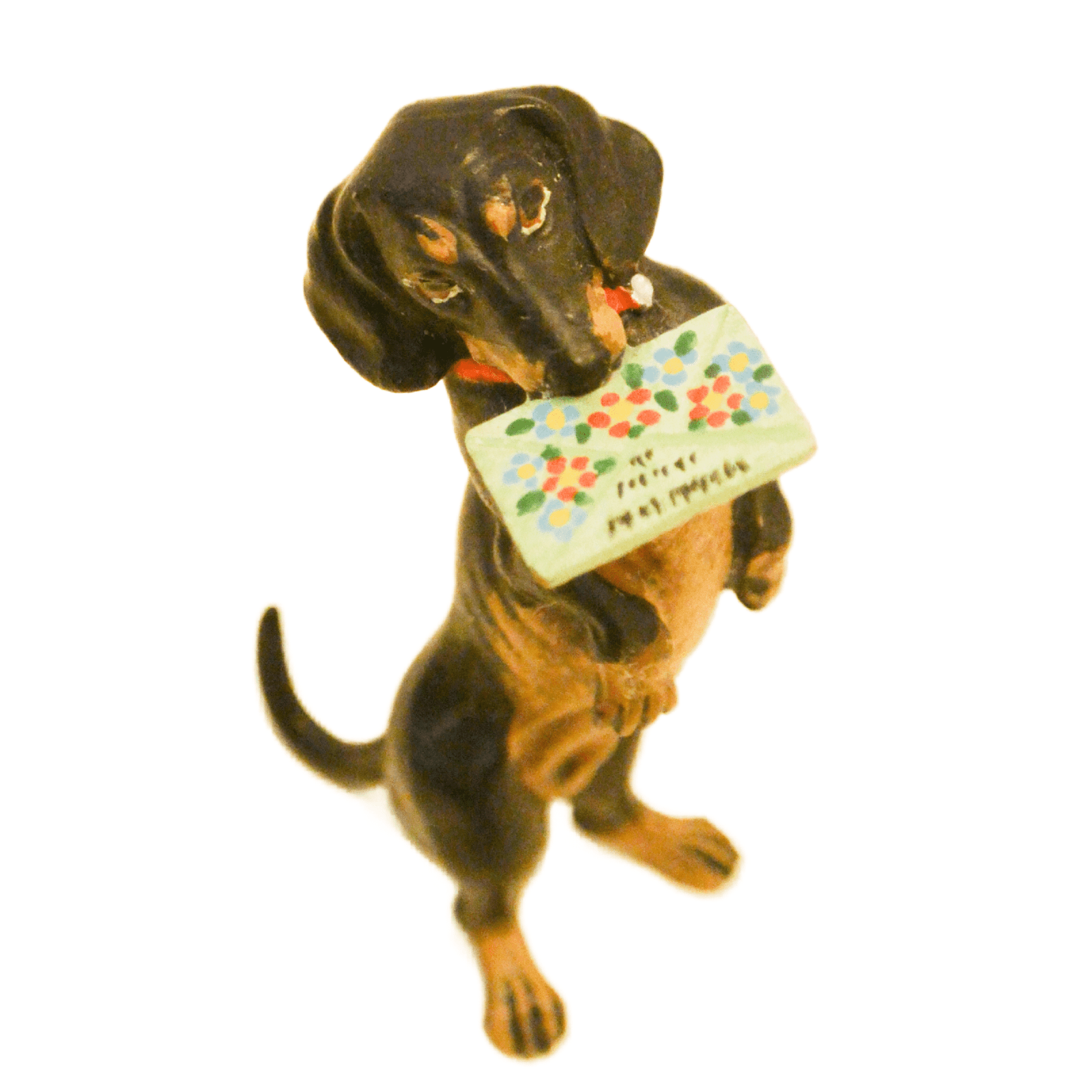 Austrian Bronze Dachshund Dog with Greeting Card