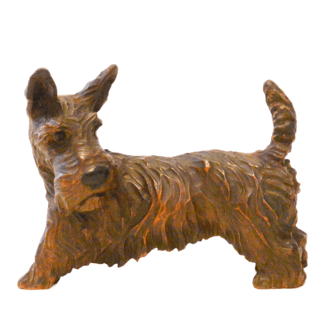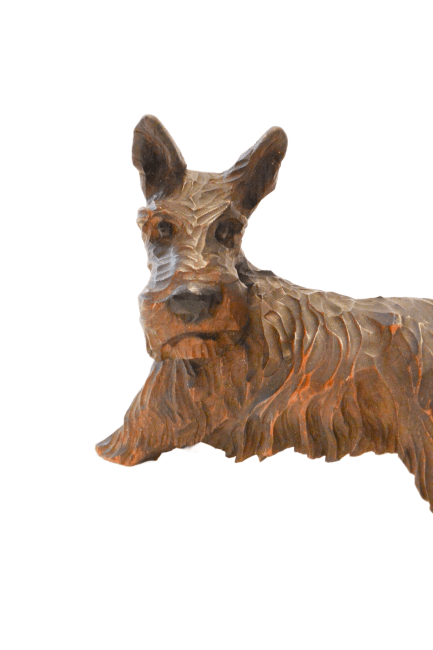 This extraordinary, Black Forest wood figurine is a wonderful standing Scottish Terrier.