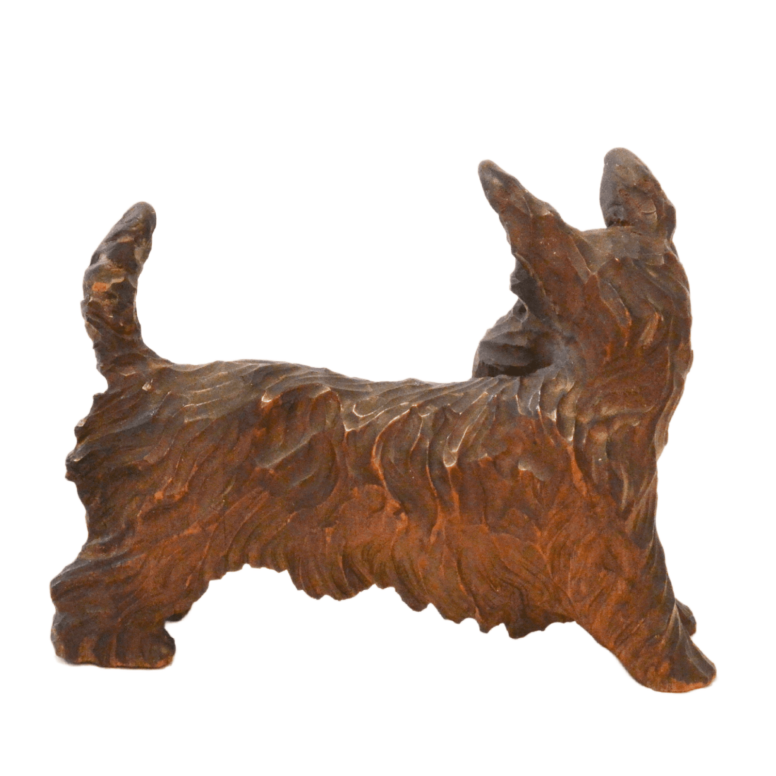 This extraordinary, Black Forest wood figurine is a wonderful standing Scottish Terrier.