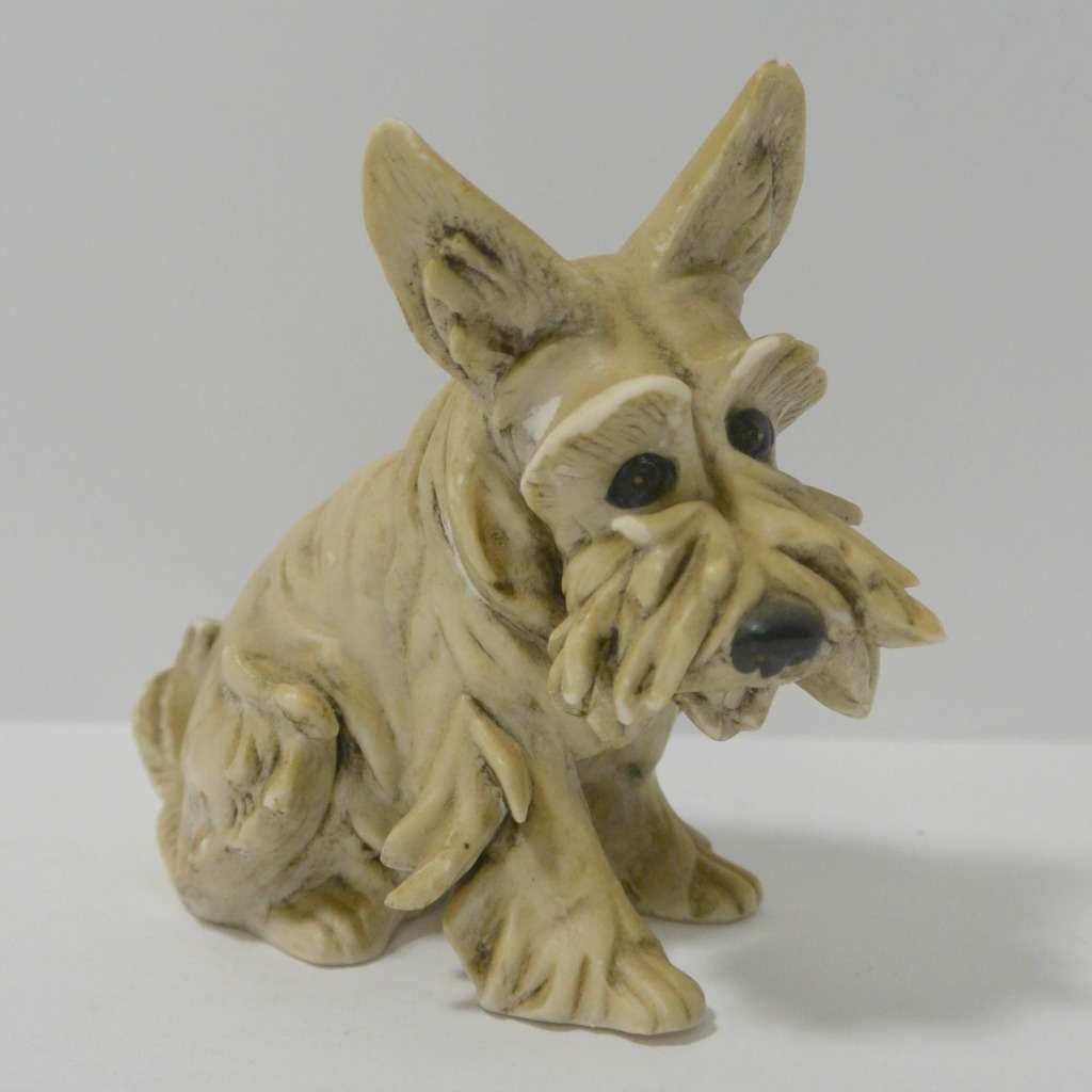 Given the age of this extraordinary dog, the Italian artist, Guido Cacciapuoti, most likely fashioned him after a Scottish Terrier.