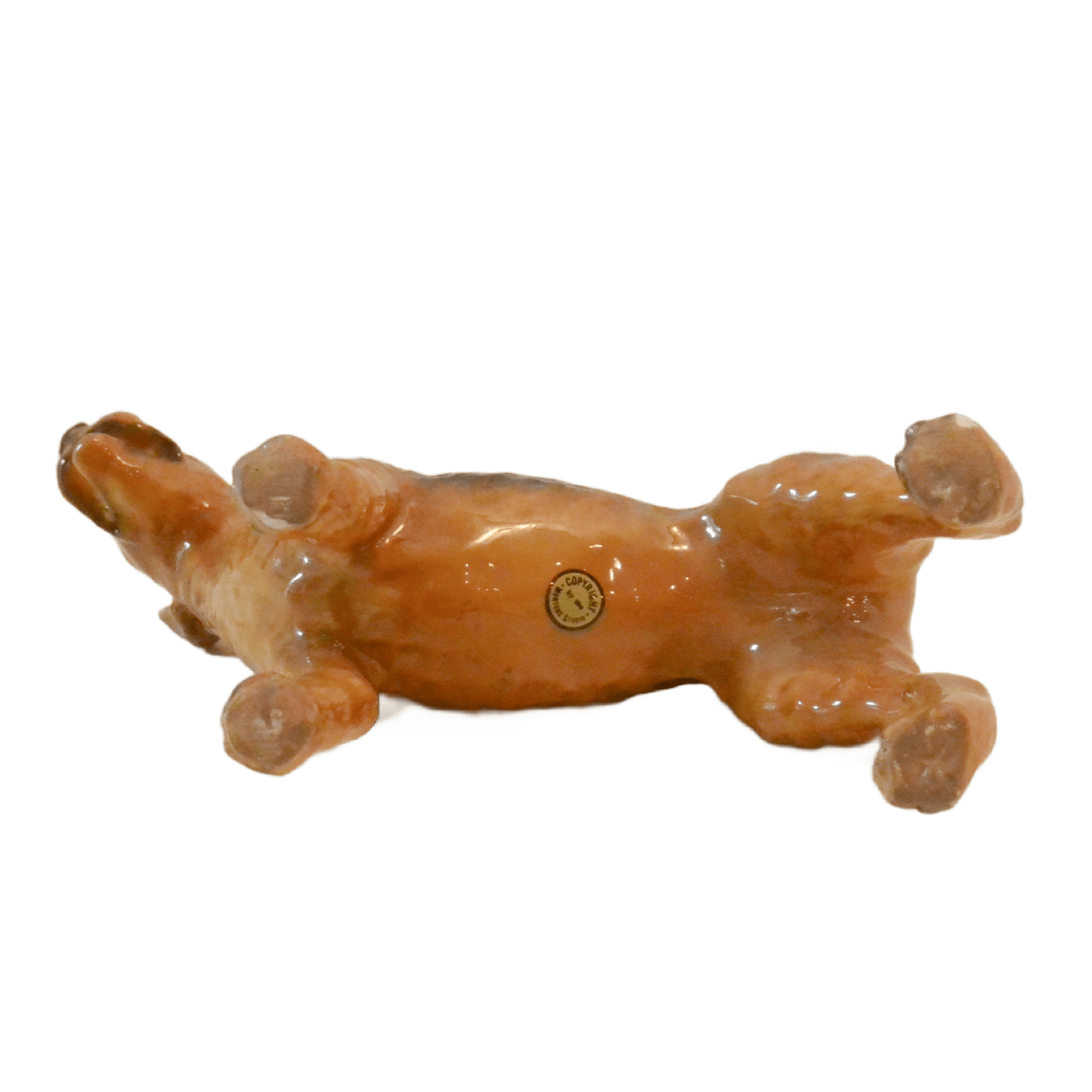 The designer of this figurine, Oscar Morten, immigrated from Sweden to the U.S. and opened a gift ware studio in Chicago in 1931. Over the next 32 years, he created over 300 popular dog and horse models. Composed of ceramic over a metal skeleton, these figurines, although beautiful and engaging, were prone to crazing and flaking, thus making it difficult, today, to find examples in perfect condition.