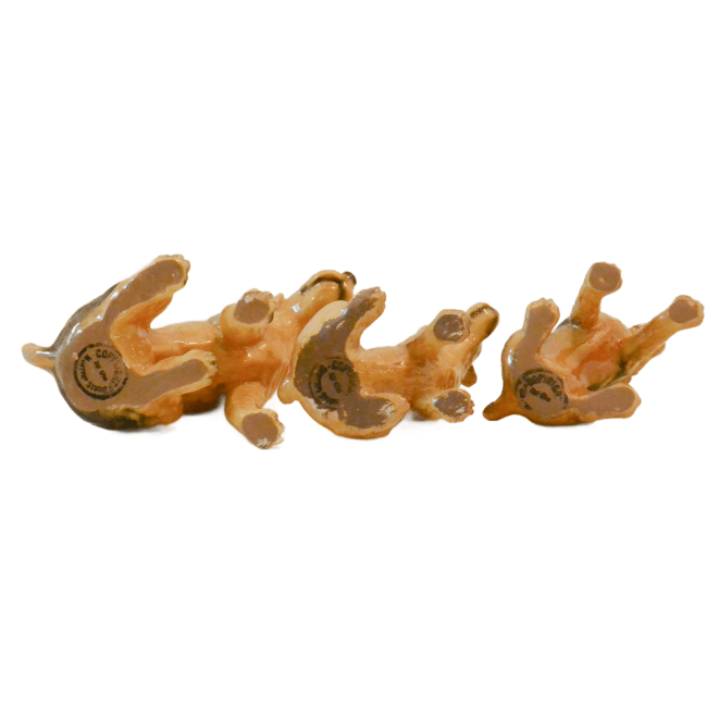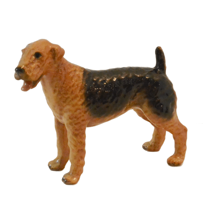 Included in the group is an adult male Airedale measuring a full 5″ tall x 6 1/2″ long x 2 1/4″ wide. He is in excellent condition with two tiny chips on the bottom edge of two paws, that can only be seen if you turn the dog over.