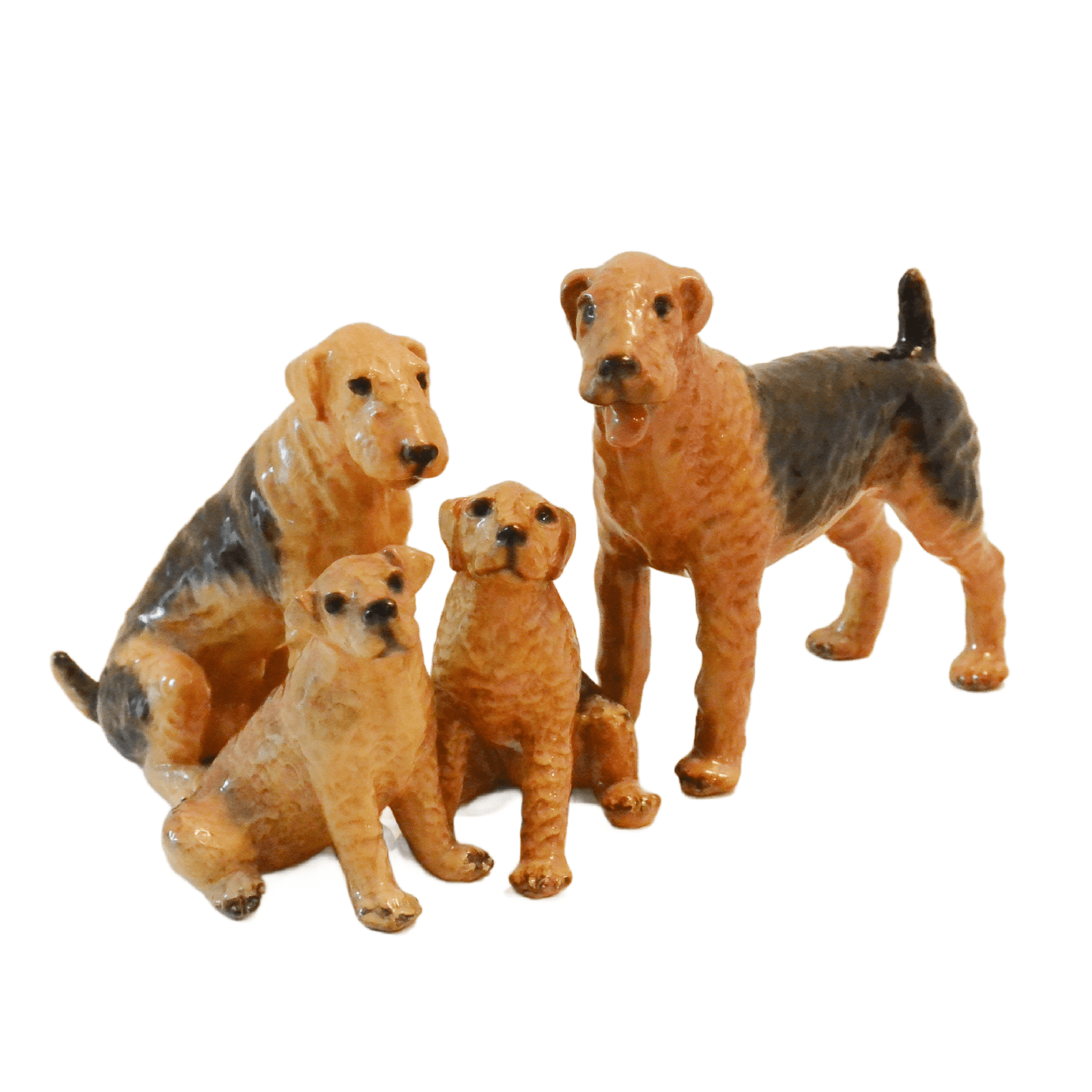 This is a fabulous opportunity to add a family group of antique Mortens Studio dogs to your collection, or give an extraordinary gift to your favorite Airedale lover