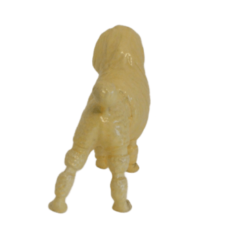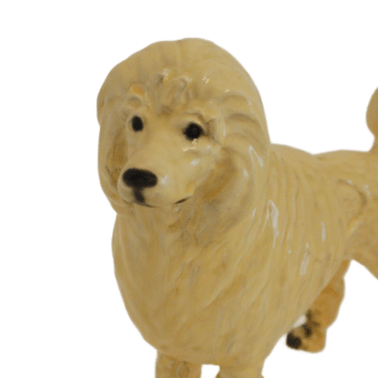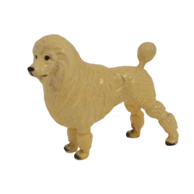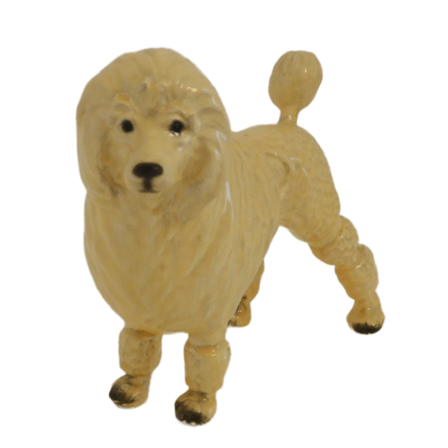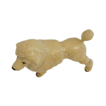 This wonderful, standing, Standard Poodle was designed and produced by Mortens Studio. At 5″ tall x 5 1/2″ long x 2″ wide, she has fabulous detailing, showing her curly “corded” coat, as well as her distinctive oval eyes.