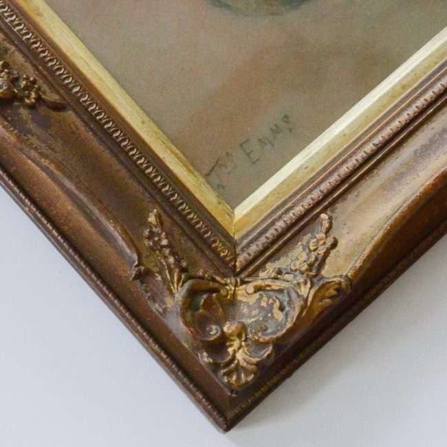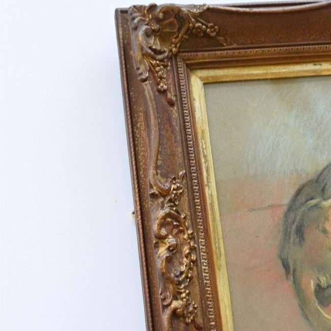 This portrait is a signed original, in mint condition, framed in a gorgeous gilded wood frame, under glass.