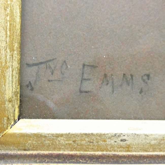 Emms (1843-1912) was a sporting and animal painter who lived in London. He specialized in portraying horses and dogs, particularly hounds.