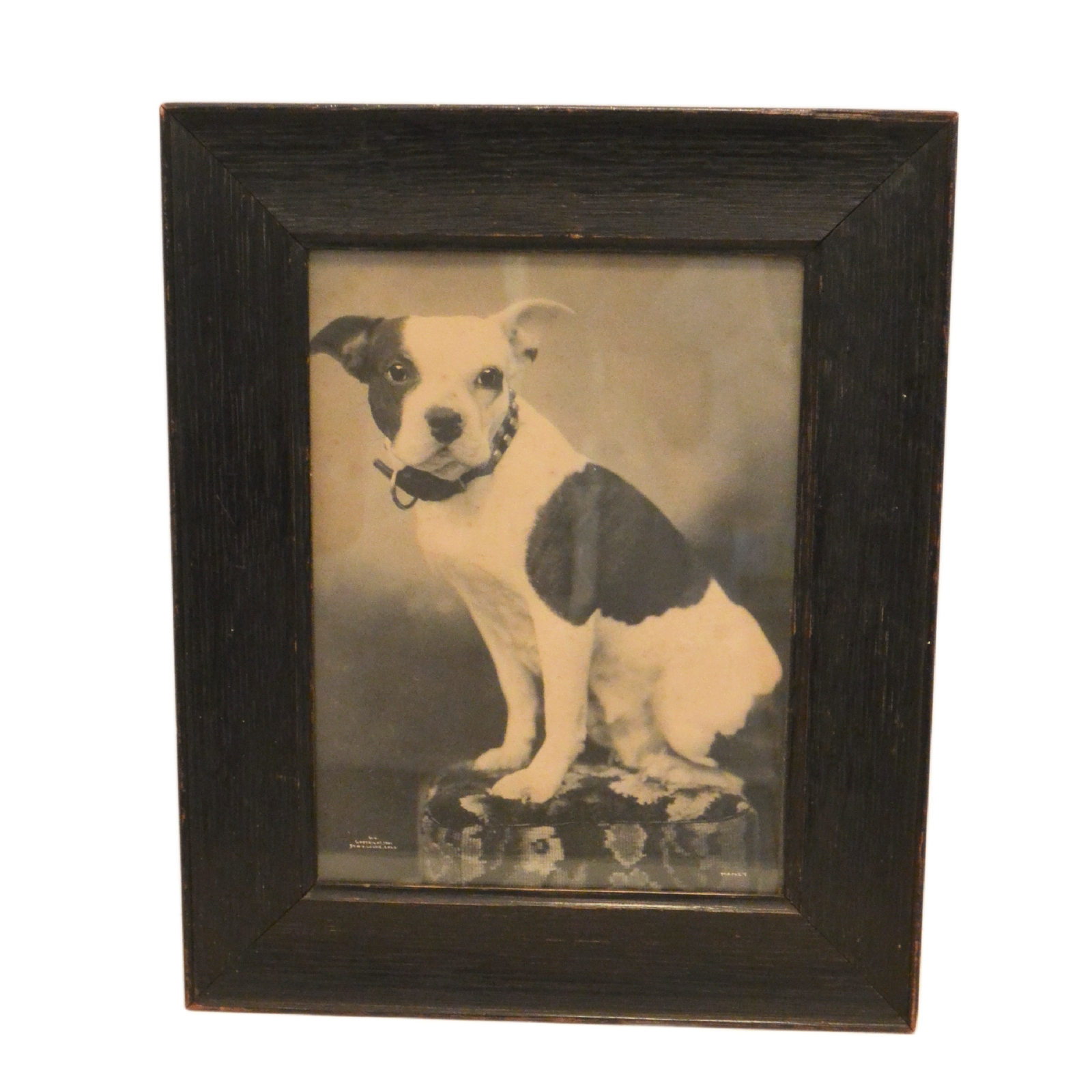 Rare 1901 W.G. Locke Platinum Print – “Nancy” the Boston Terrier – Large Framed Antique Dog Portrait