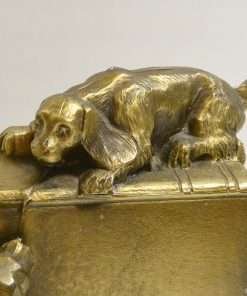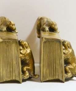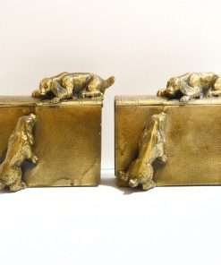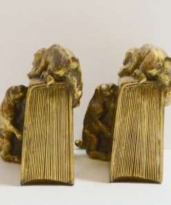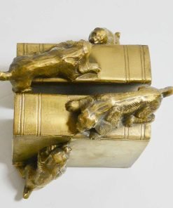 This wonderfully detailed set of dog bookends is identified in “The Collector’s Encyclopedia of Bookends” by Louis Kuritzky and Charles DeCosta, and titled “Dogs at Play.” In this book, they are given a rarity of 5, with 5 being the most rare.
