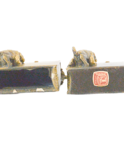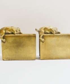 They are in great vintage condition, with a lovely patina, and each one weighing nearly 4lbs. They are each 51/2″ tall x 5 1/2″ long x 3 3/4″ wide. One of these bookends is missing the felt covering on the underside of the base.