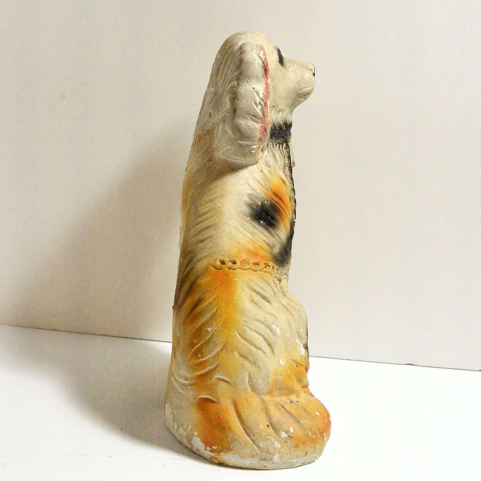 This beautiful, vintage, chalkware Staffordshire Spaniel dog has both provenance and charm.