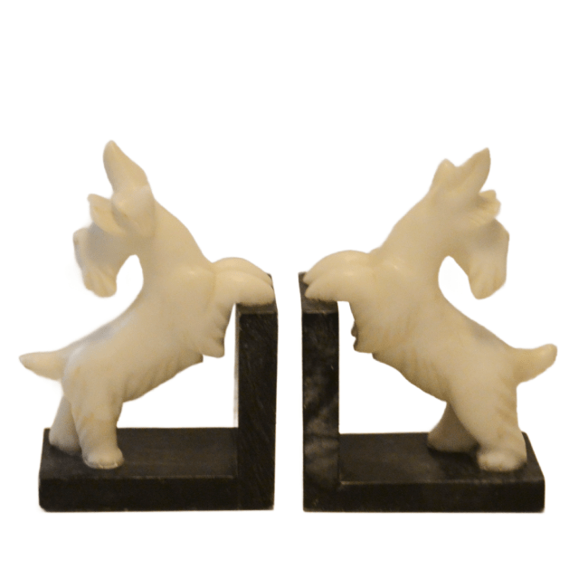 These wonderful Art Deco bookends are made up of white alabaster Scottish Terriers, positioned on black marble bases.