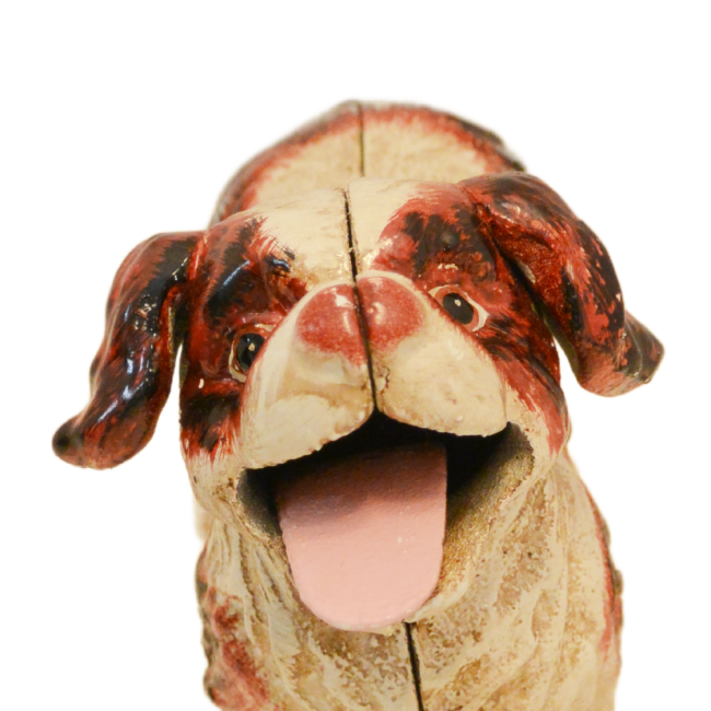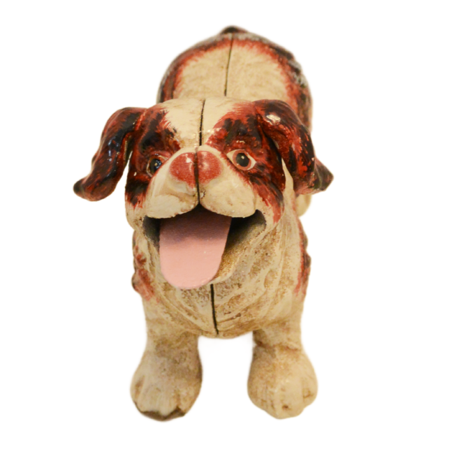 It is also in excellent working condition. Just lift the tail of this adorable puppy, place a coin on his tongue, and he will happily gobble it up.