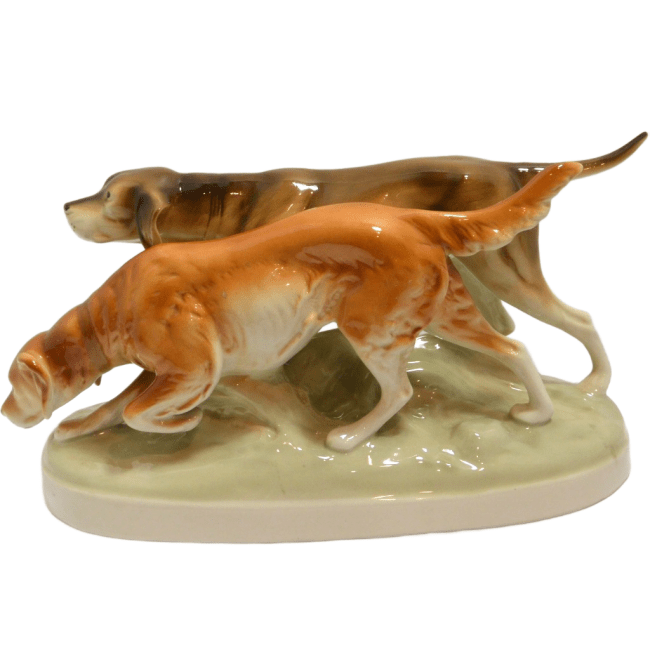This elegant, hand-painted, porcelain figurine of a pair of Sporting Dogs was made in Czechoslovakia by Royal Dux.