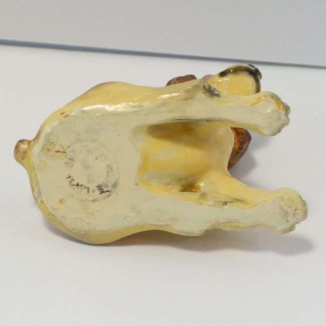 The designer of this figurine, Oscar Morten, immigrated from Sweden to the U.S. and opened a gift ware studio in Chicago in 1931. Over the next two decades, he created over 300 popular dog and horse models. Composed of ceramic over a metal skeleton, these figurines, although beautiful and engaging, were prone to crazing and flaking, thus making it difficult, today, to find examples in perfect condition.