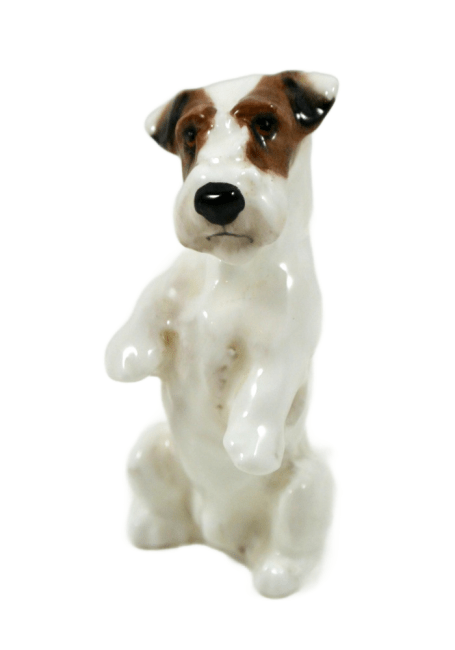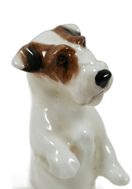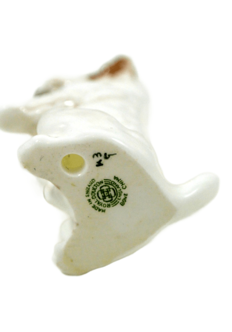 He has been hand painted in a bright, creamy white, with touches of black and caramel, and completed in a perfect glossy finish. He makes the perfect desk companion with his engaging pose and expression. As one of the Royal Doulton K-Series, he is highly collectible!