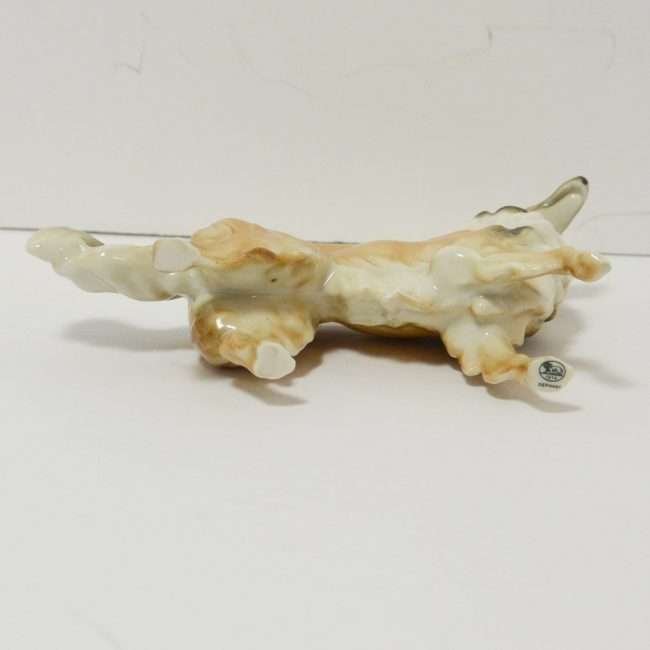 She stands a 41/2″ tall x 61/2″ long x 1 1/2″ wide. She has her modeller’s name incised on the underside of her paw, with the Hutschenreuther stamp, that dates her to 1970. She is in mint condition.