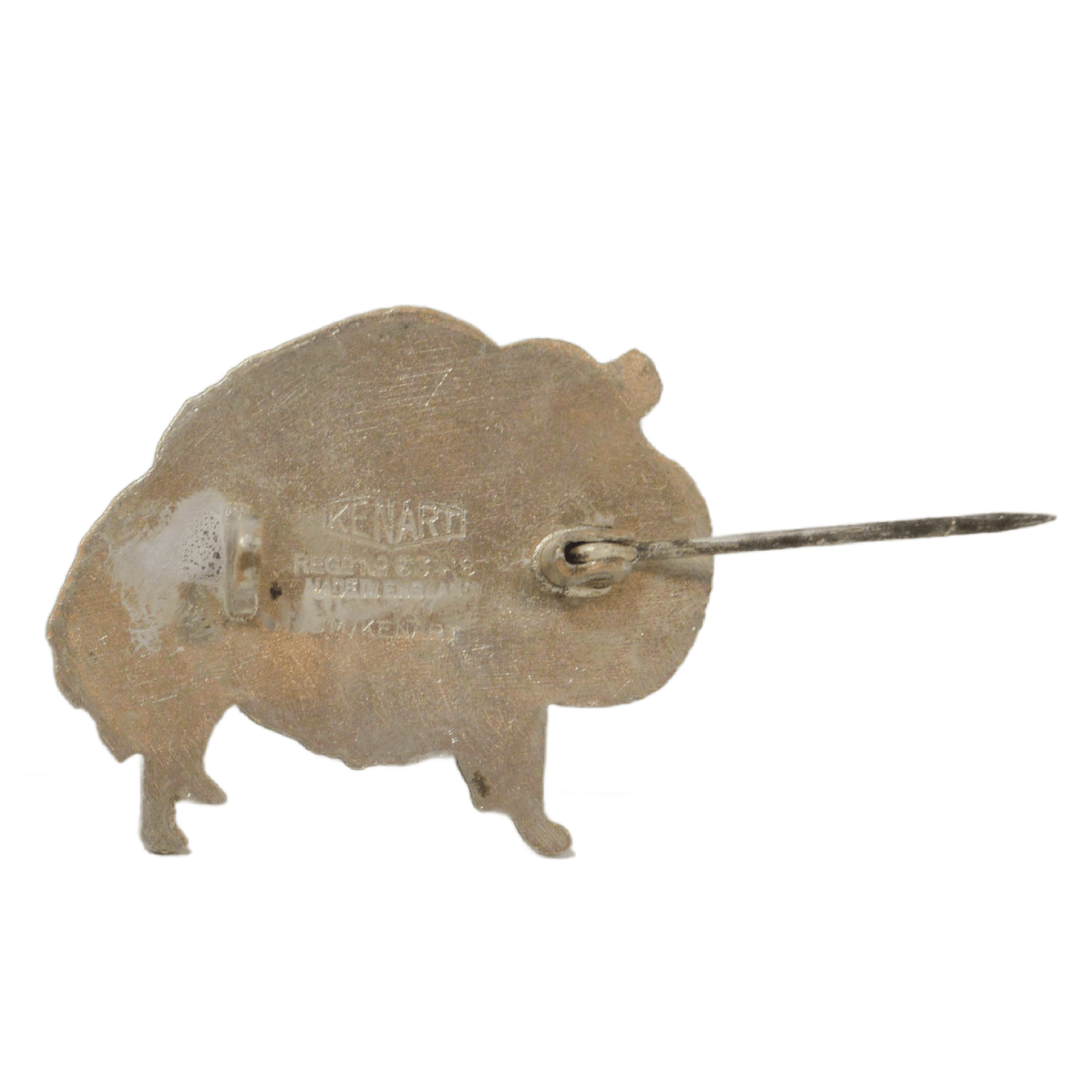 It is in excellent condition, on the front measuring 1 1/4″ tall x 1 1/2” long. The back of this pin has some wear, with a perfectly working pin and clasp.