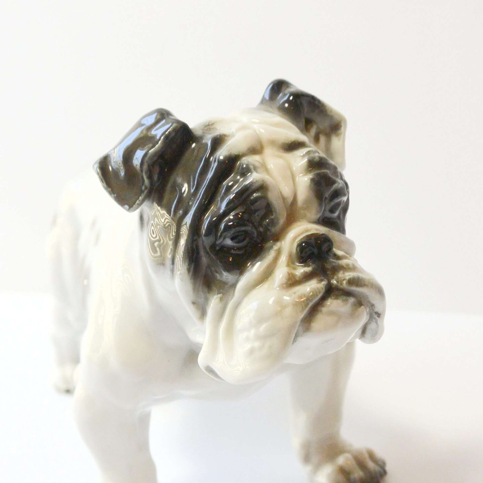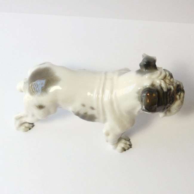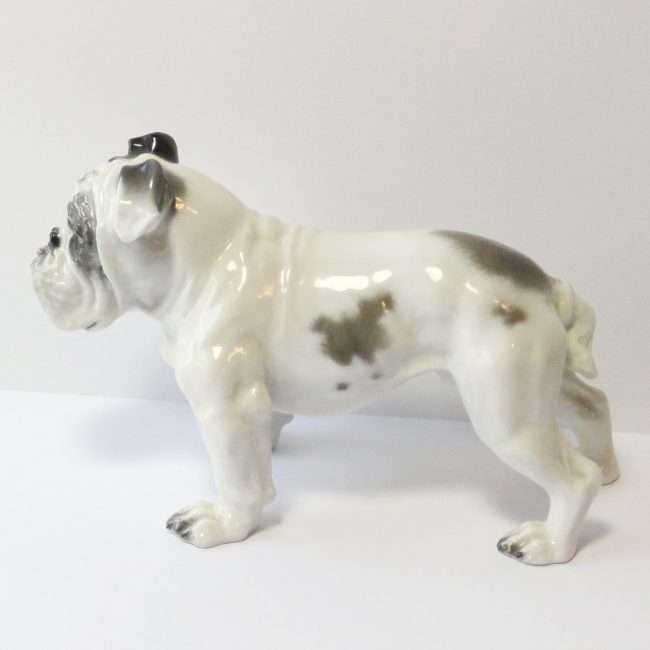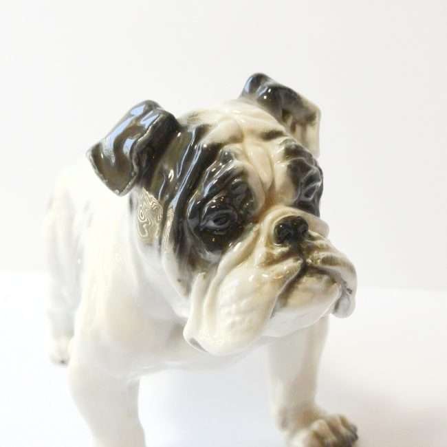 He’s just perfect! From his classic Bulldog stance, to the the self-assured demeanor so characteristic of the breed, this wonderful dog stands 4 1/2″ tall x 7″ long x 3 1/2″ wide.
