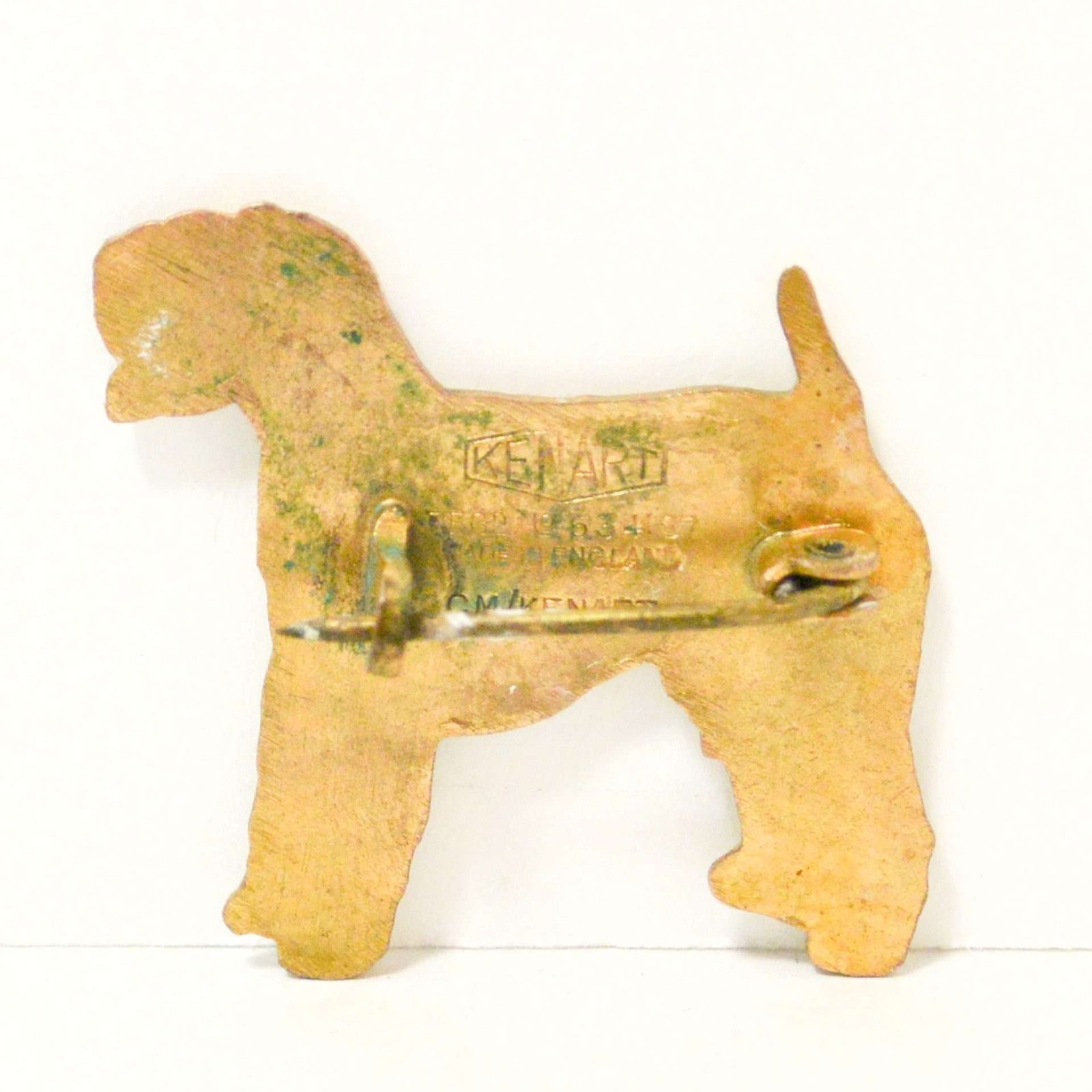 This wonderful vintage Soft-Coated Wheaton Terrier pin was made by the Kenart company in England between 1950 – 1980.
