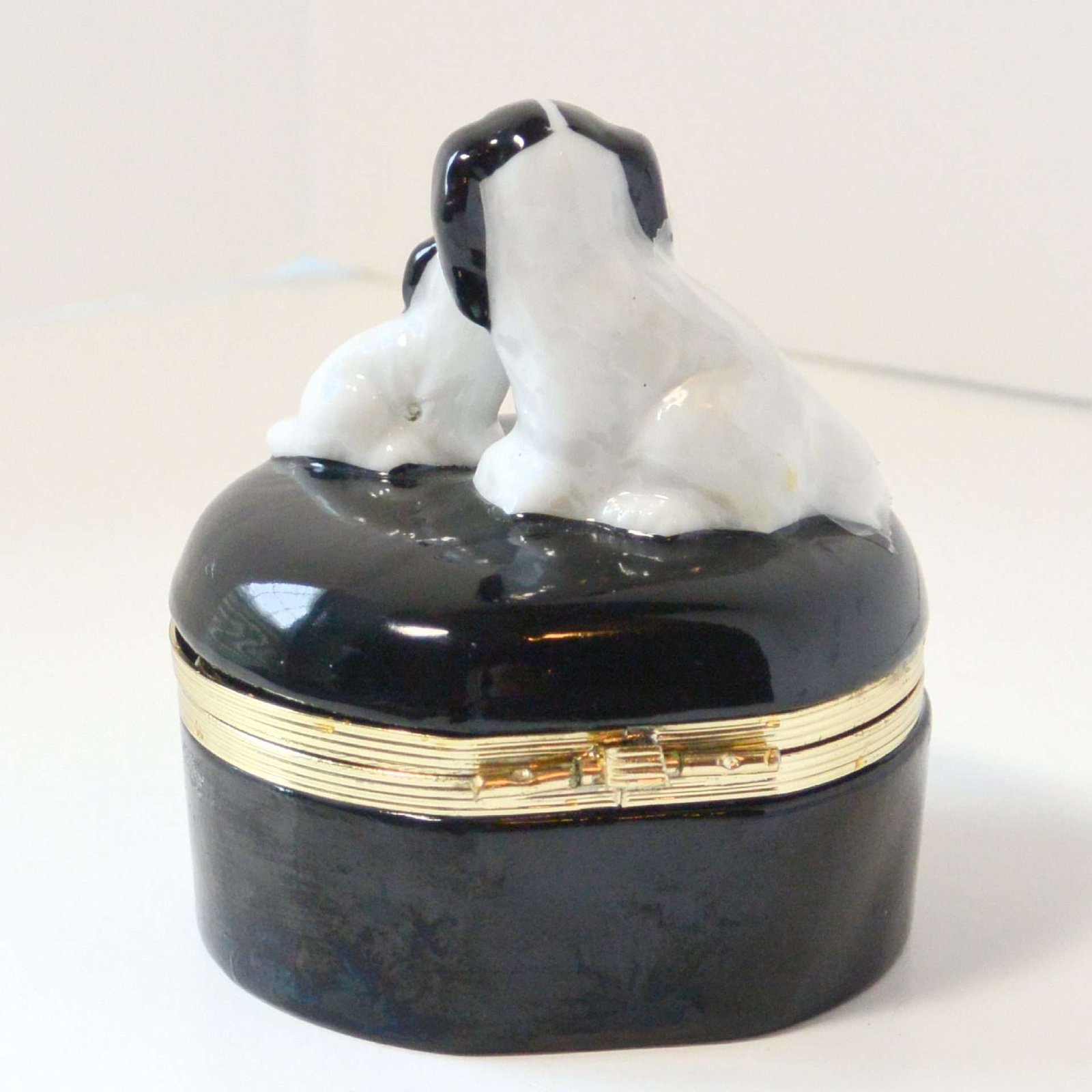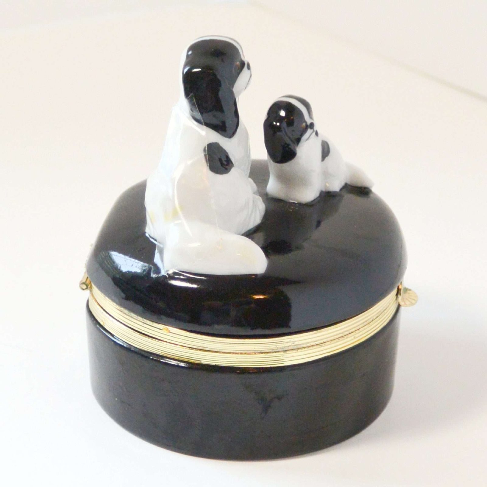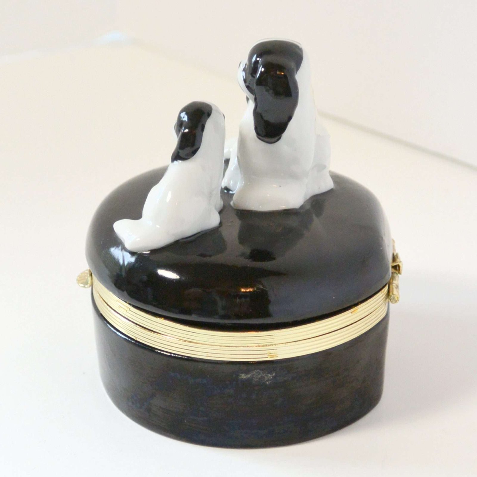 This vintage trinket box features a pair of Japanese Chin dogs.
