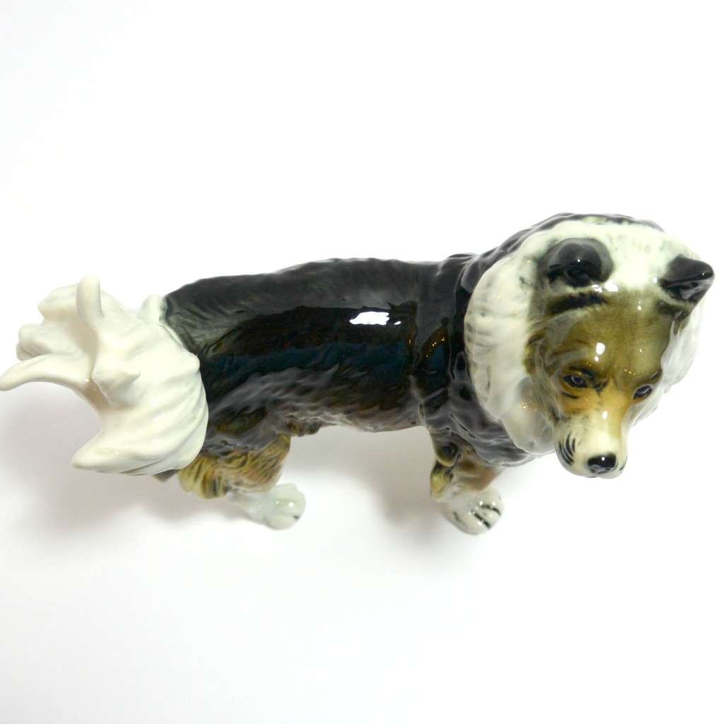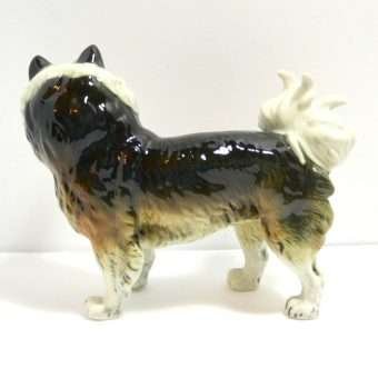 This hand-painted, porcelain Keeshond dog is truly a rare find. Designed by Karl Ens and manufactured by the Volkstedt Porcelain Factory, he is in excellent condition.