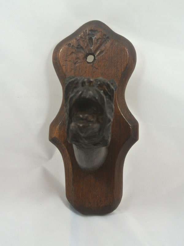 Vintage Hand Carved Black Forest Terrier Dog Head Hook