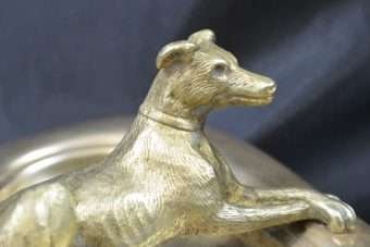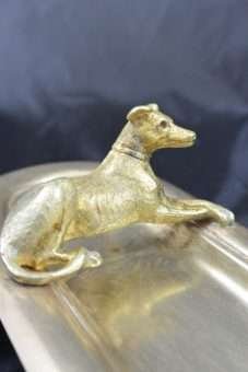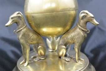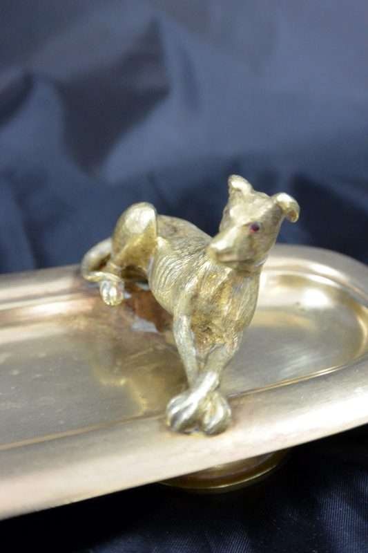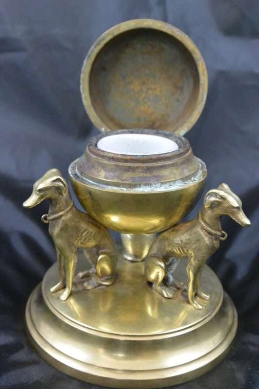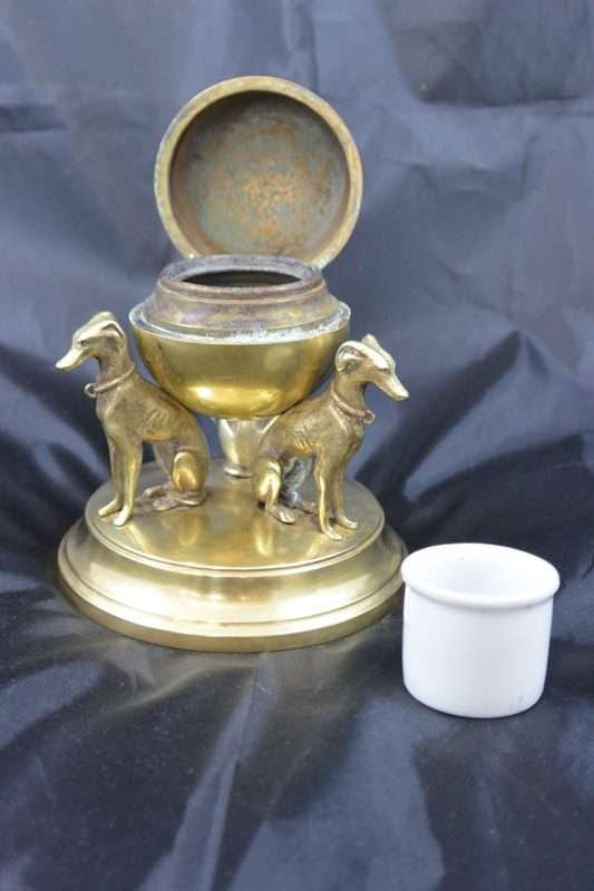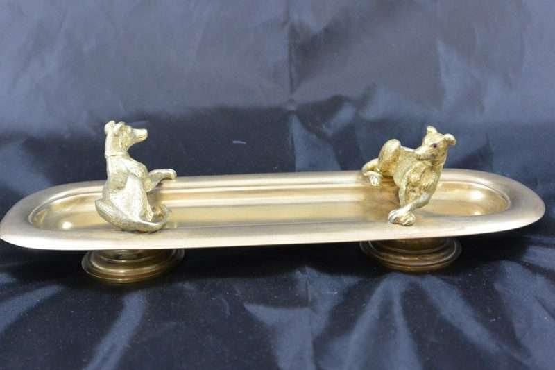 Antique Brass Whippet Inkwell and Matching Pen Tray C1850