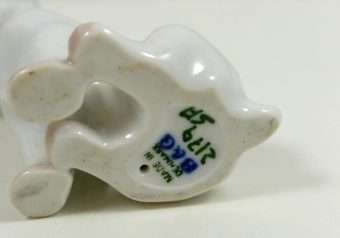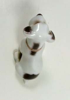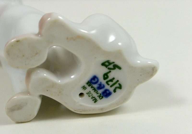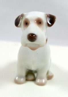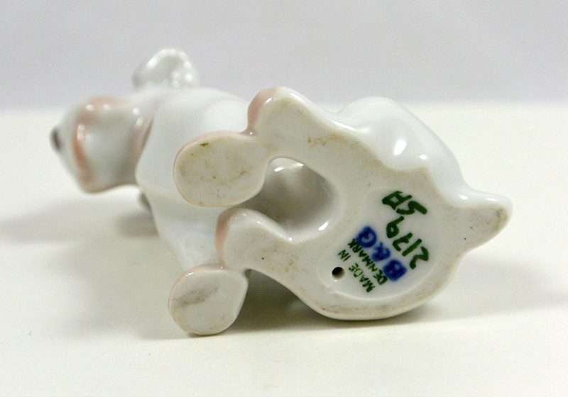 Some canine porcelains have such amazing expressions that they almost seem to look straight into your heart. This little guy does just that! Designed for Bing & Grondahl by Lauritz Jensen, he sits 2 1/4″ tall x 1 1/2″ long x 1 1/4″ wide.