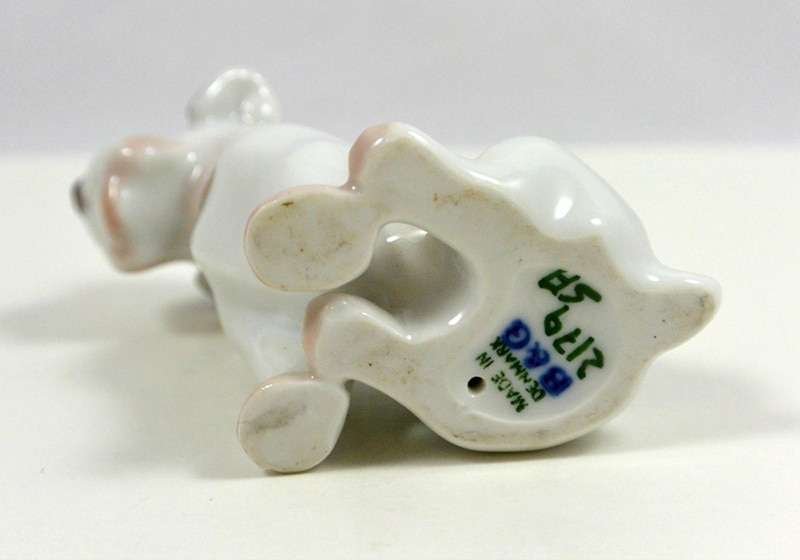 Some canine porcelains have such amazing expressions that they almost seem to look straight into your heart. This little guy does just that! Designed for Bing & Grondahl by Lauritz Jensen, he sits 2 1/4″ tall x 1 1/2″ long x 1 1/4″ wide.